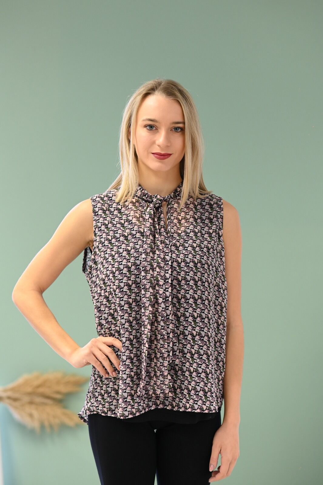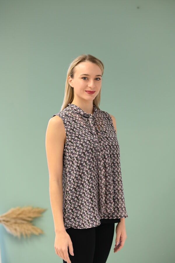 Ανανεώστε το στυλ σας με αυτήν την κομψή αμάνικη μπλούζα από ζορζέτα, ιδανική για κάθε περίσταση. Το εμπριμέ σχέδιο της προσθέτει μία παιχνιδιάρικη νότα, ενώ το ελαφρύ και αέρινο ύφασμά της προσφέρει άνεση και ελευθερία κινήσεων.